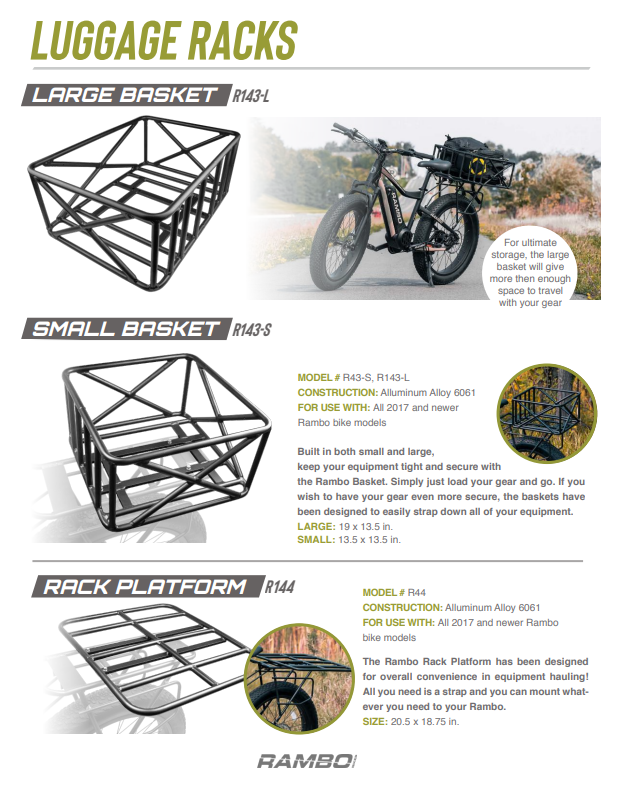 The Savage works with many of Rambo’s great accessories including: front and rear rack, front suspension fork, and fenders allowing the rider to customize the bike to fit their needs.