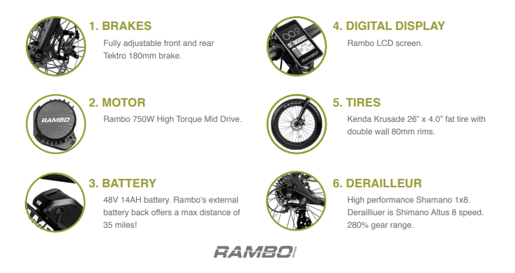You're viewing: Rambo Savage 2.0 Fat Tire 15AH Electric Power Bike – 750W Original price was: $2,499.99.Current price is: $2,199.99.