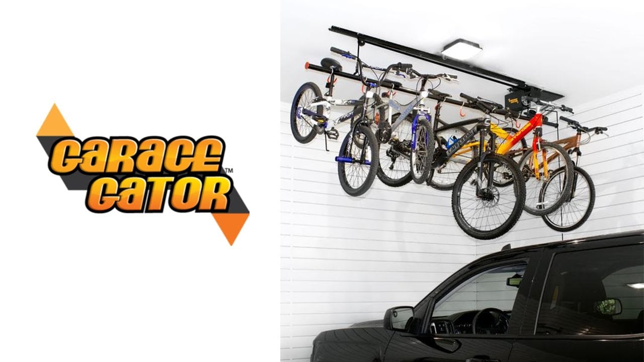 No more climbing ladders to store your bikes away, let the Garage Gator Eight Bicycle lift take the strain out of heavy lifting and organizing. Easy to install and even easier to use. The Garage Gator lift lowers to ground level so you can attach your bikes and golf bags, and then with a click of a button get them up and out of the way.